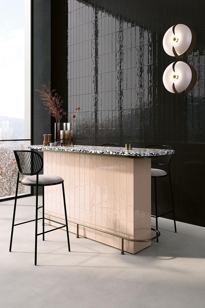 Fioranese entstaubt einen Klassiker in der Geschichte der Keramikverkleidungen, interpretiert ihn jedoch in einem zeitgenössischen Stil neu: eine neue Ergänzung für die Innenarchitektur, die dank der raffinierten Farbpalette und des überraschend „glänzenden“ Effekts Räume mit einer originellen und edlen Note verwandelt .