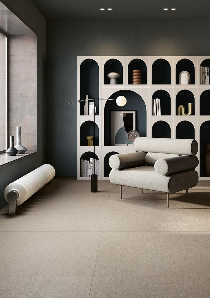 Mashup New Blend zeigt weiche, zuckerbeschichtete Fliesen mit Betoneffekt, die in einer äußerst modernen Palette von vier neutralen Farben erhältlich sind, die von sandigem Weiß bis zu dunkleren Grautönen reichen