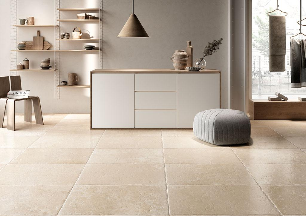 Die Kollektion ist von apulischen Kalksteinplatten inspiriert. Das Feinsteinzeug in Steinoptik von Pietraviva vereint Materialreinheit und Authentizität und definiert eine natürliche und diskrete Stimmung, die für Innen- und Außenräume geeignet ist.