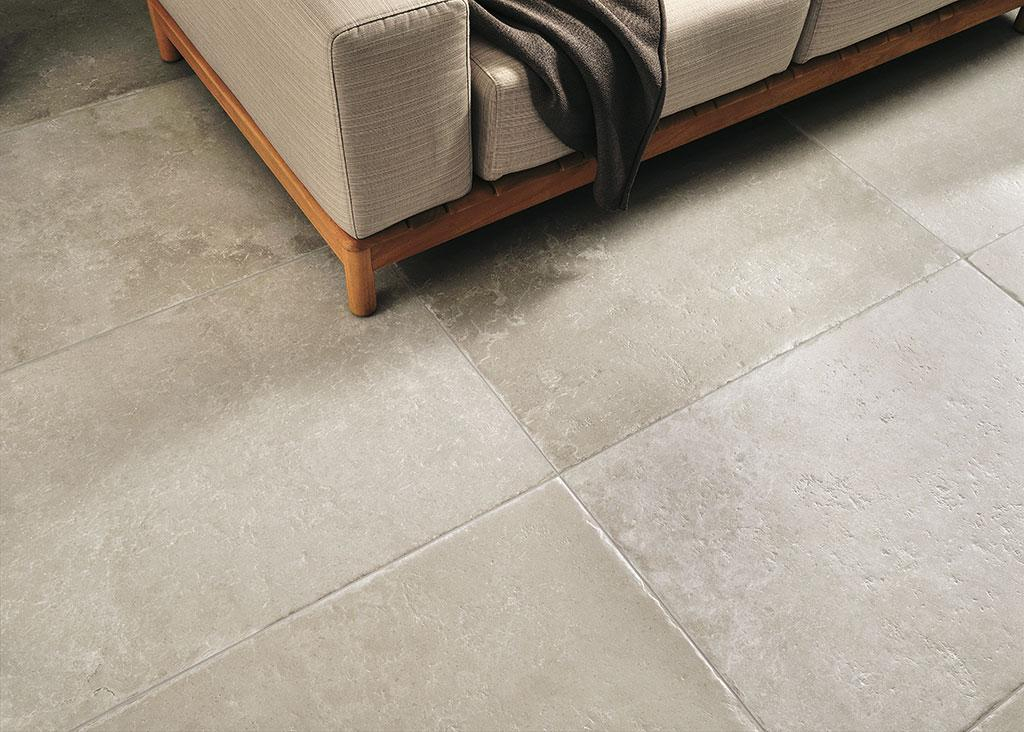 Die Kollektion ist von apulischen Kalksteinplatten inspiriert. Das Feinsteinzeug in Steinoptik von Pietraviva vereint Materialreinheit und Authentizität und definiert eine natürliche und diskrete Stimmung, die für Innen- und Außenräume geeignet ist.
