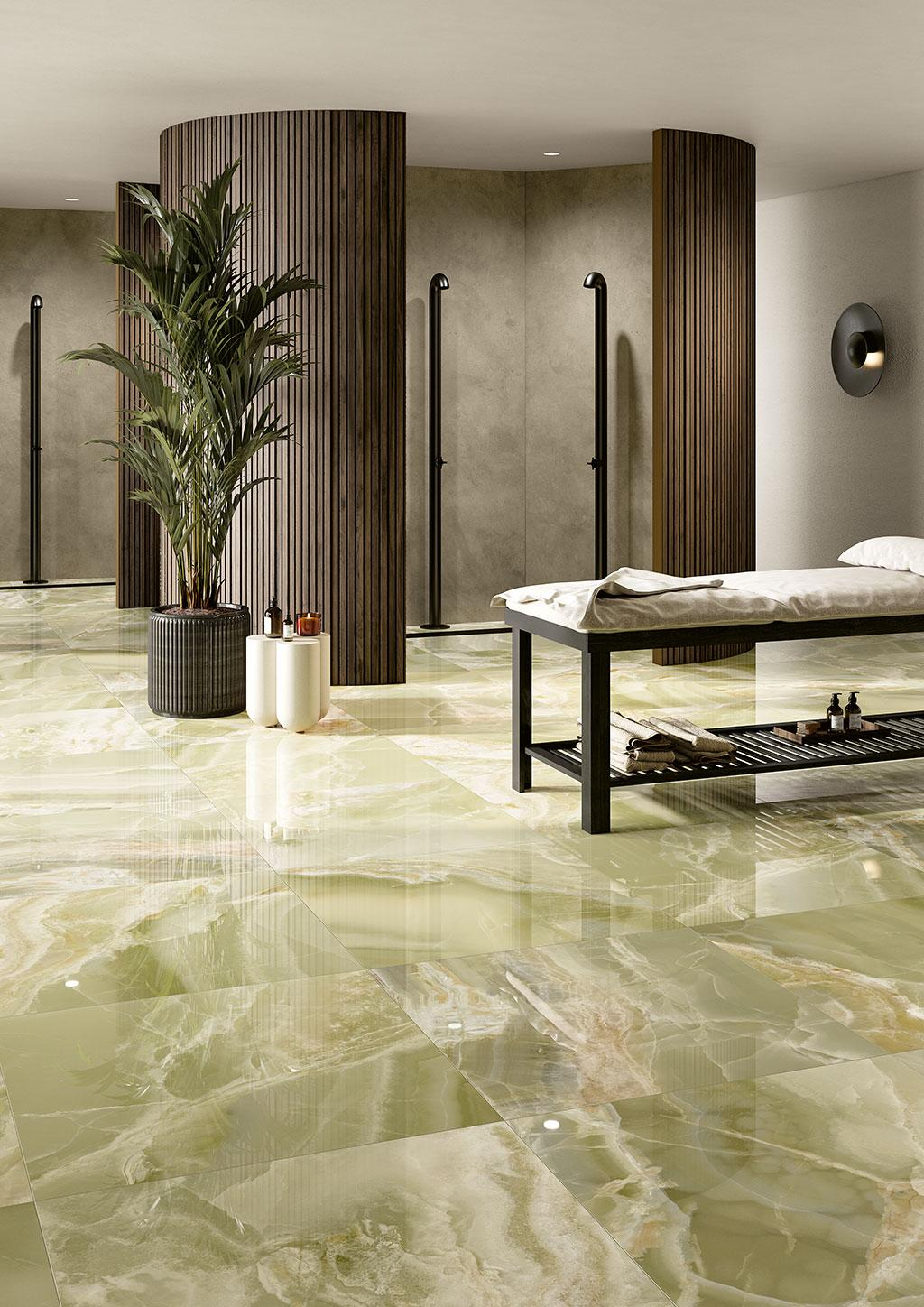 Emotionale Wirkung, verstärkt durch den glatten Effekt, der die Kostbarkeit der Oberfläche hervorhebt und allen Umgebungen Helligkeit und Eleganz verleiht, um öffentliche und private Räume zu verschönern, vom modernsten bis zum klassischsten Stil.