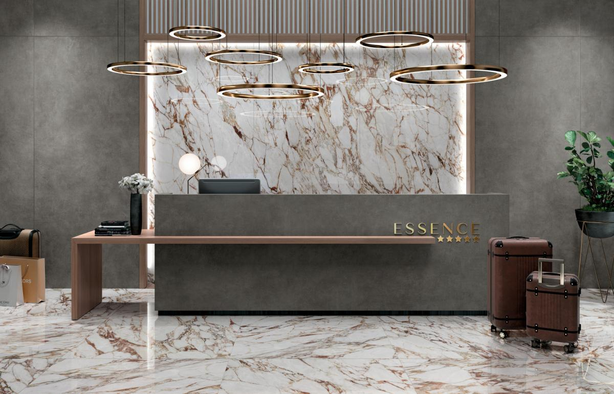 Eine Sammlung, in der jede Platte bewegt sich wie ein Kunstwerk. Erforschung der feinsten Marmore und deren Interpretation in Feinsteinzeug mit absoluter Aufmerksamkeit, um die Tiefe der Oberflächen, den Reichtum der Details und die Zufälligkeit der Maserungen wiederherzustellen.