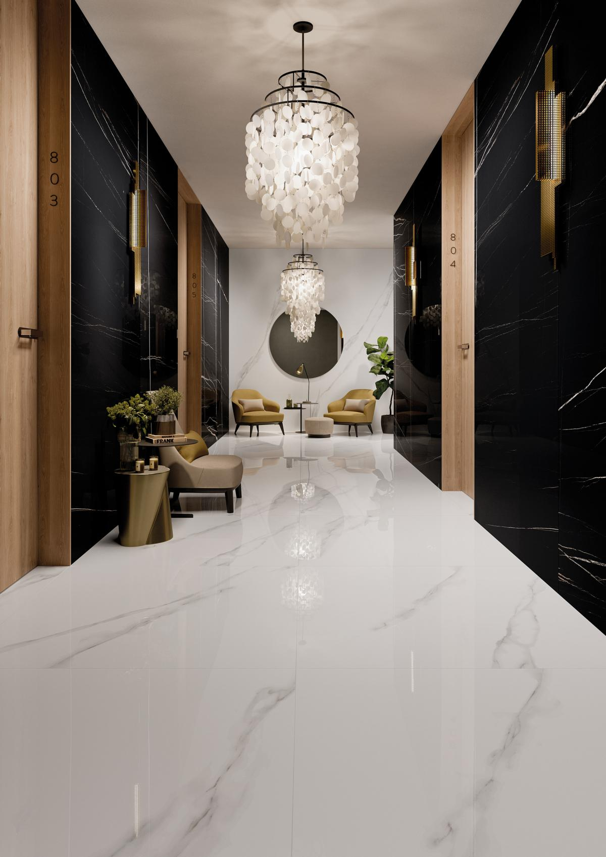 Der Charme des Natursteins, die Präzision der subtilen Maserungen, der Realismus der Farbnuancen, die intensive Harmonie der Töne kommen in einer exklusiven Kollektion kostbarer Marmore zum Ausdruck.