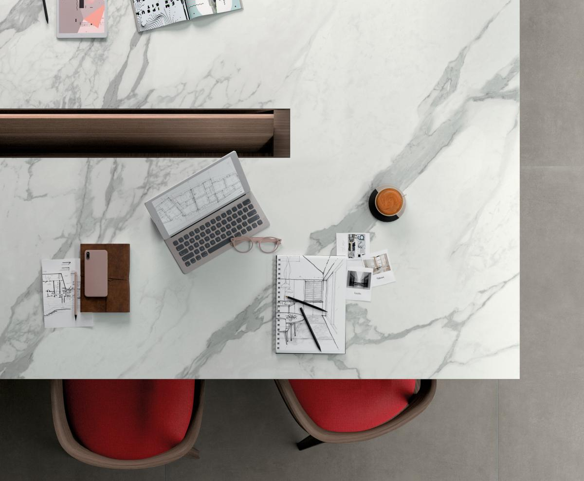 Der Charme des Natursteins, die Präzision der subtilen Maserungen, der Realismus der Farbnuancen, die intensive Harmonie der Töne kommen in einer exklusiven Kollektion kostbarer Marmore zum Ausdruck.