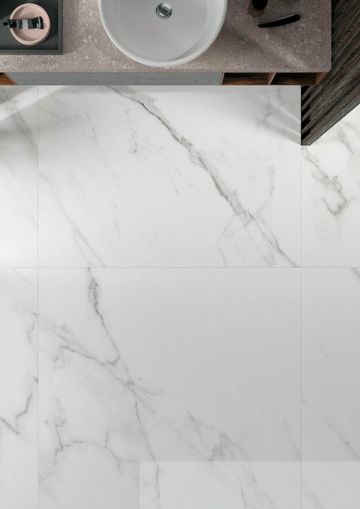 Der Charme des Natursteins, die Präzision der subtilen Maserungen, der Realismus der Farbnuancen, die intensive Harmonie der Töne kommen in einer exklusiven Kollektion kostbarer Marmore zum Ausdruck.