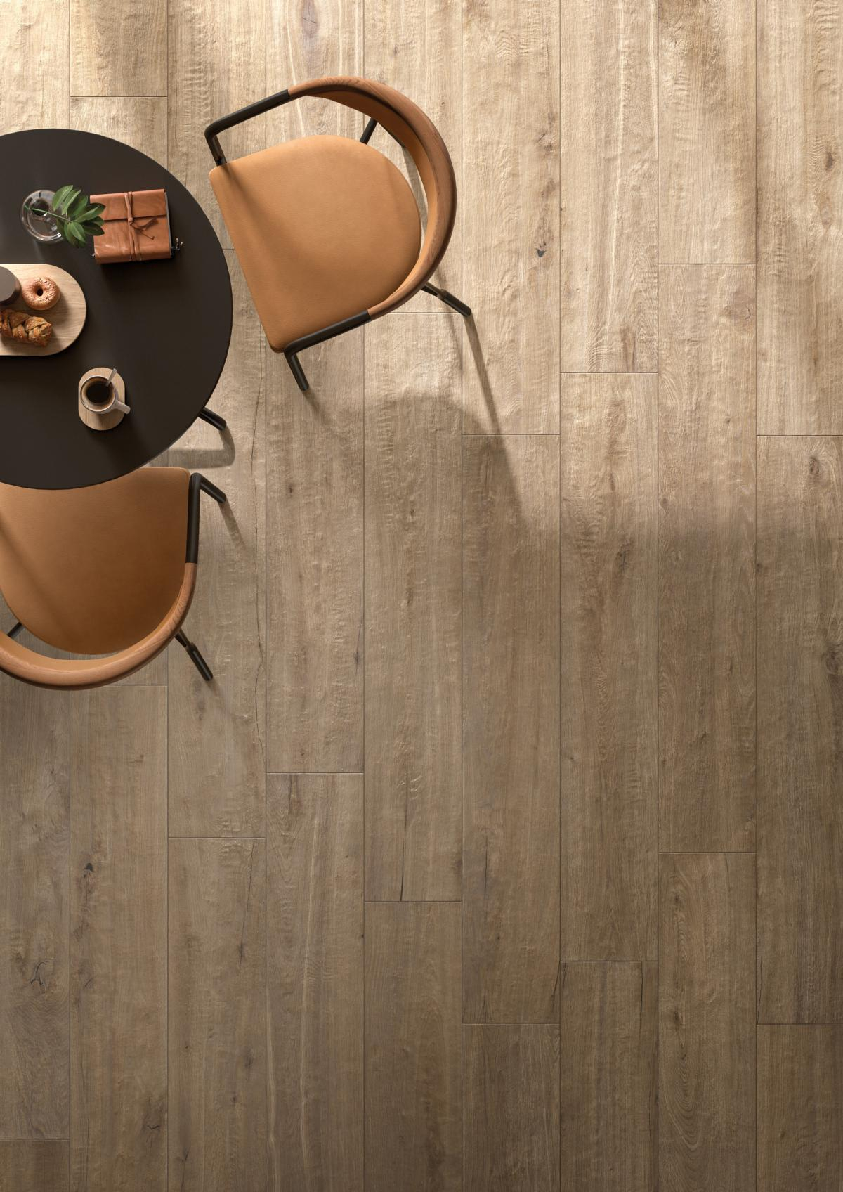 Diese Kollektion bietet eine neue Perspektive auf die Schönheit und Vielseitigkeit traditioneller Holzböden. Von der Struktur über die Auswahl der Äste und Maserungen bis hin zur zart gewachsten Oberfläche