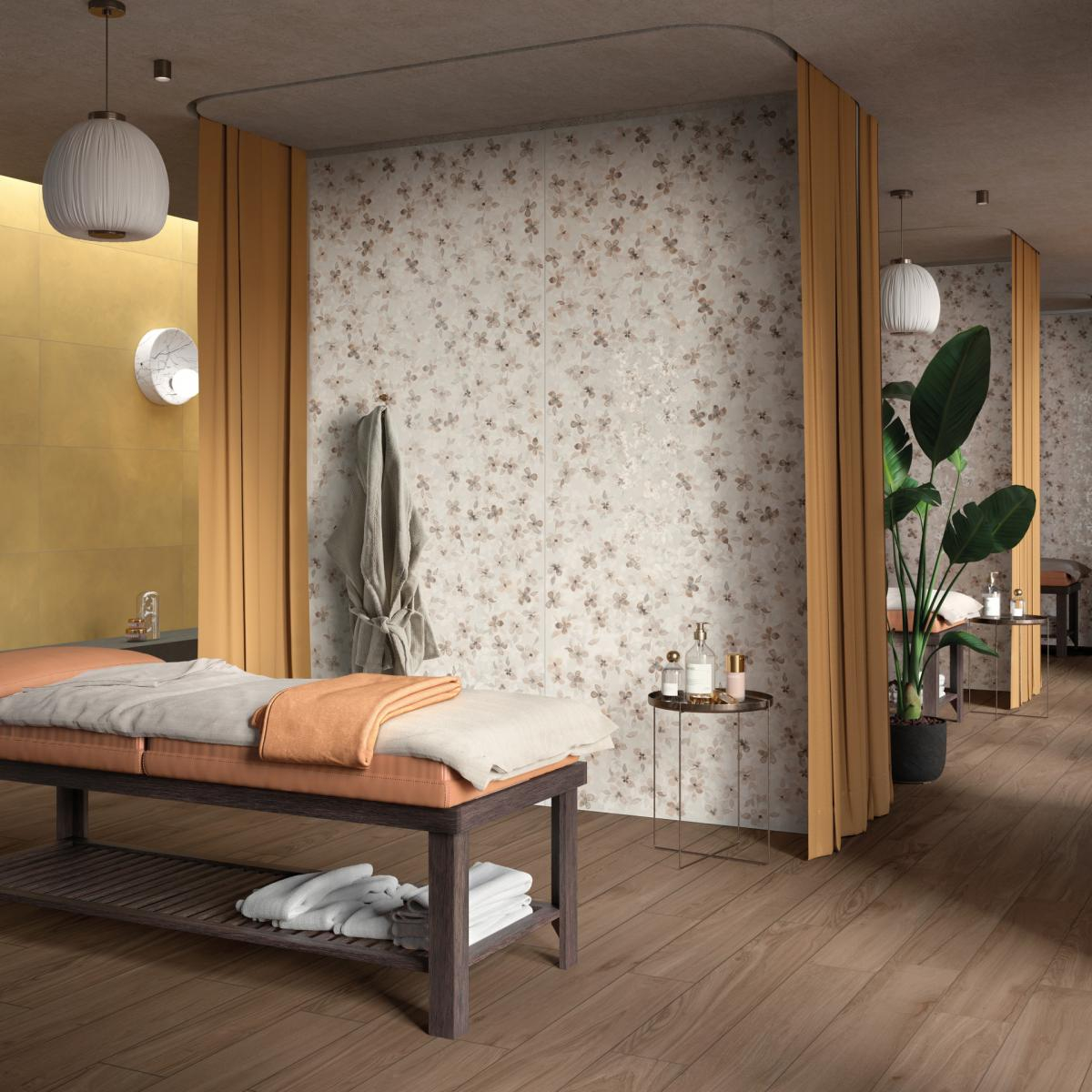 Dekorative Oberflächen aus Feinsteinzeug, die jeden Kontext in einen Wohn- und Erlebnisraum verwandeln können.