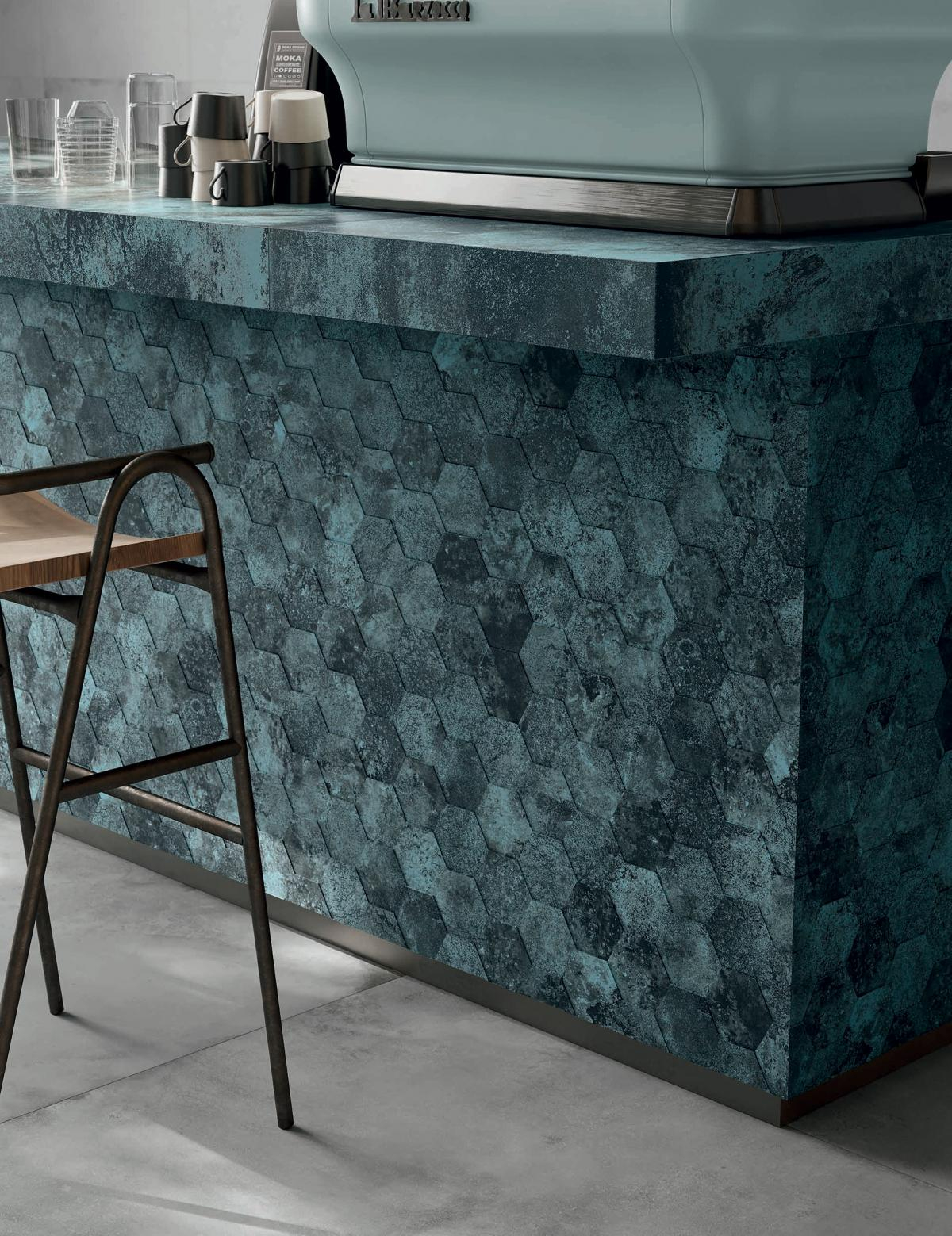 Die Strenge der Metalloptik trifft auf Experimente und Transformationen, die von einem Design auf hohem Niveau entworfen wurden, und erweckt eine Feinsteinzeugkollektion mit außergewöhnlicher visueller Kraft zum Leben