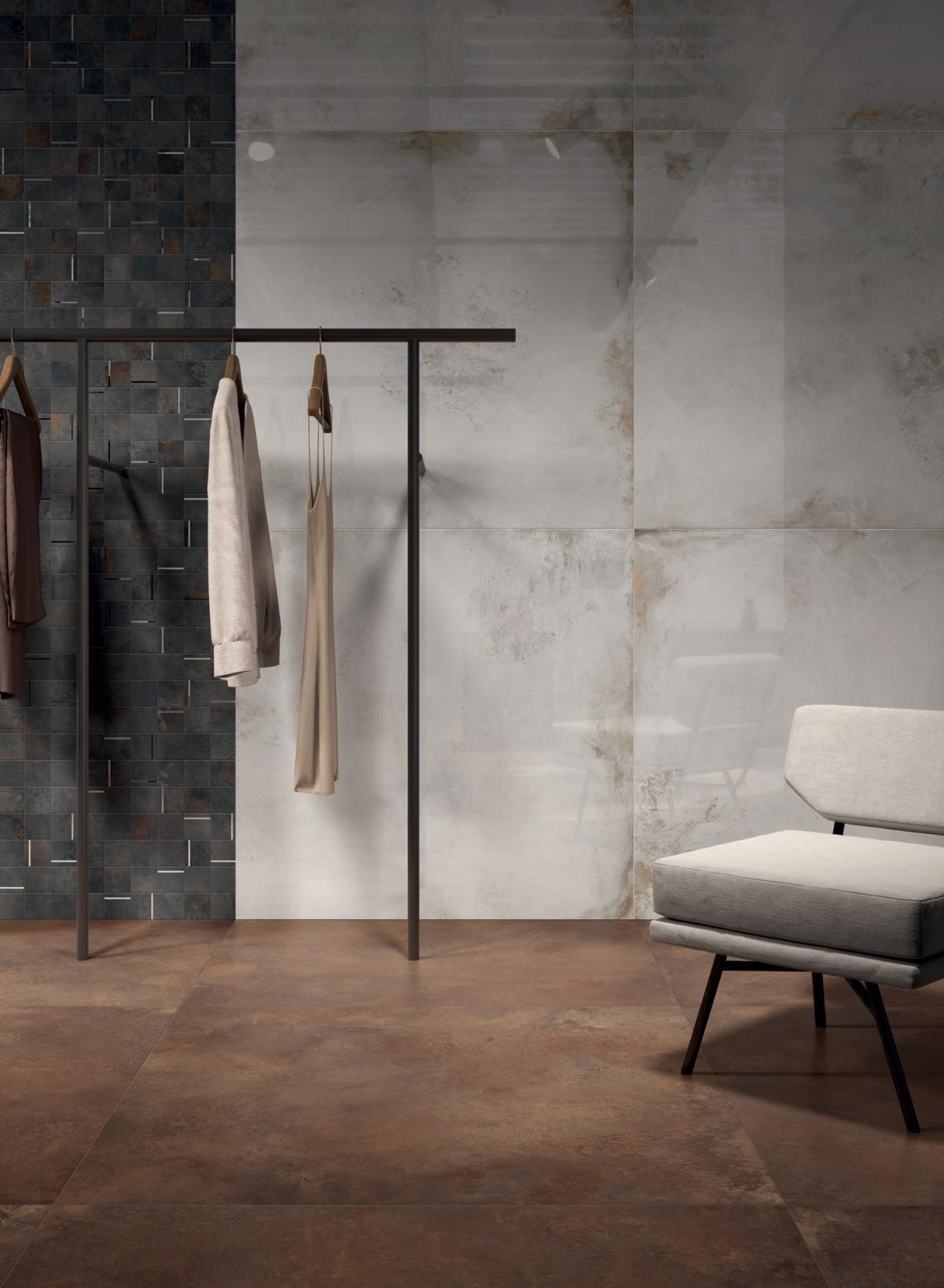 Die Strenge der Metalloptik trifft auf Experimente und Transformationen, die von einem Design auf hohem Niveau entworfen wurden, und erweckt eine Feinsteinzeugkollektion mit außergewöhnlicher visueller Kraft zum Leben