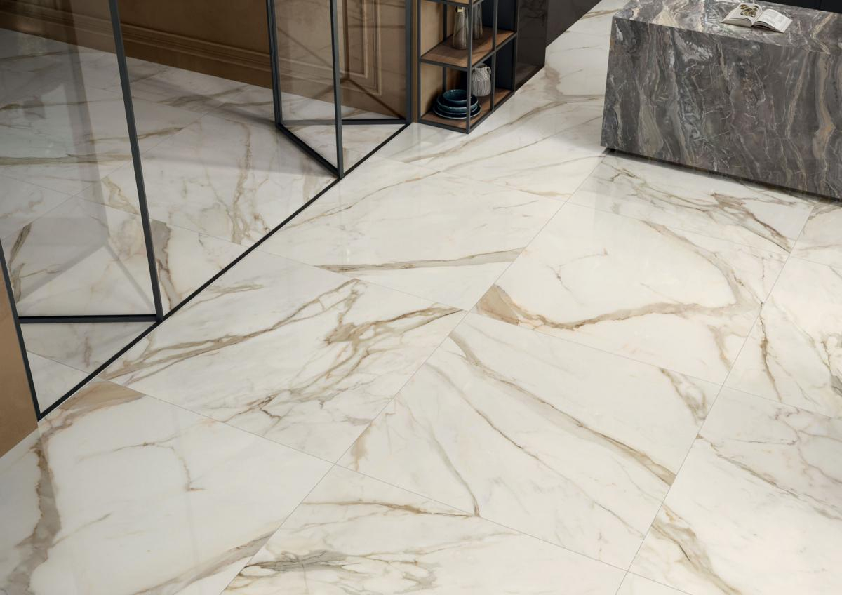 Mit Anima Futura beleuchtet das Feinsteinzeug von Caesar die große Schönheit des Marmors aus einem originellen Blickwinkel und suggeriert einen tief aktuellen Stil, der in die Zukunft projiziert wird