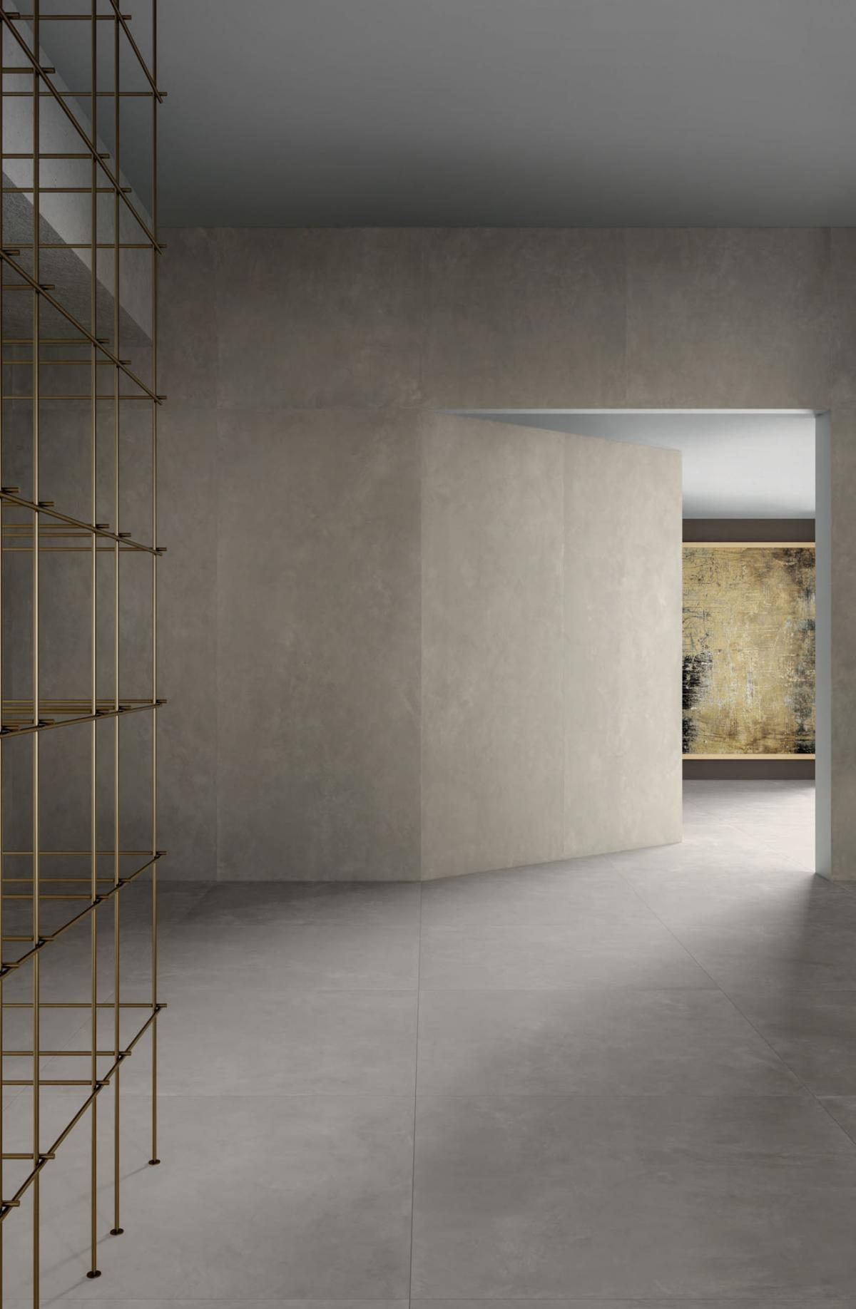 Die Designidee besteht darin, die Modernität von Beton und die Eleganz von Harz innerhalb desselben Produkts zu kombinieren. Eine Kollektion aus Feinsteinzeug von kostbarem Materialwert entsteht, mit weichen Oberflächen und vielseitiger Verwendung