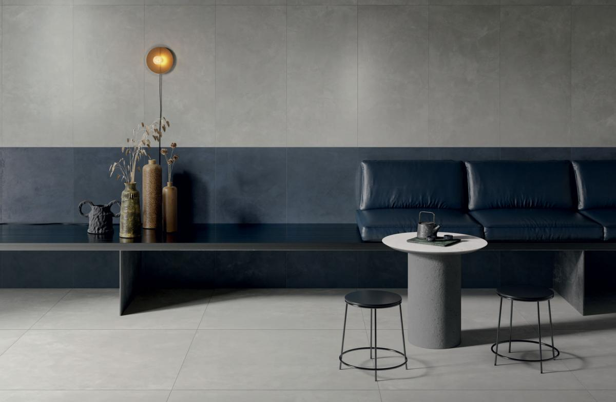 Die Designidee besteht darin, die Modernität von Beton und die Eleganz von Harz innerhalb desselben Produkts zu kombinieren. Eine Kollektion aus Feinsteinzeug von kostbarem Materialwert entsteht, mit weichen Oberflächen und vielseitiger Verwendung