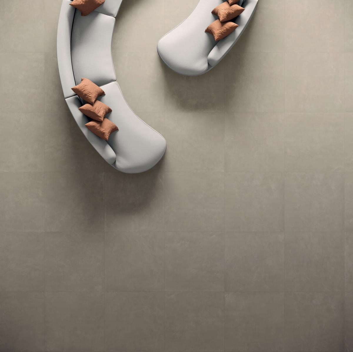 Die Designidee besteht darin, die Modernität von Beton und die Eleganz von Harz innerhalb desselben Produkts zu kombinieren. Eine Kollektion aus Feinsteinzeug von kostbarem Materialwert entsteht, mit weichen Oberflächen und vielseitiger Verwendung