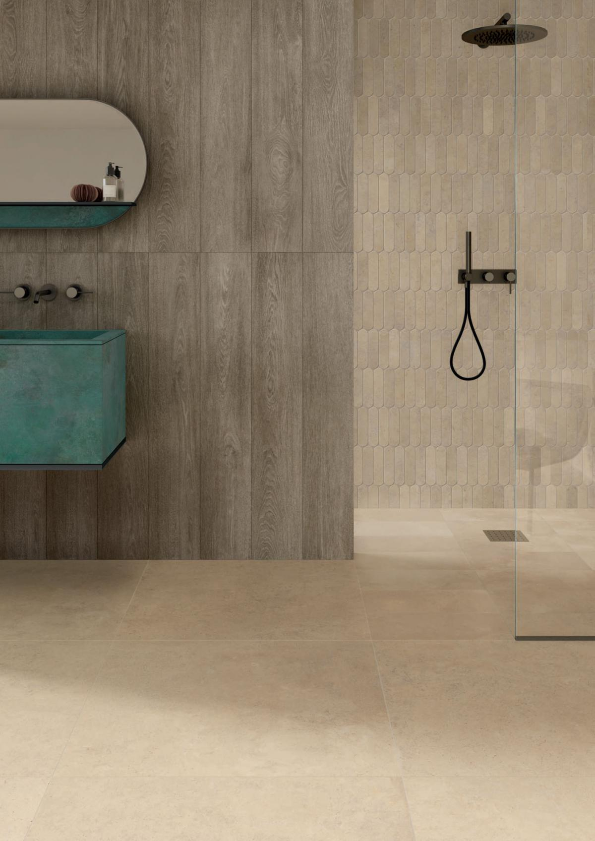 Aus der Wärme von Terrakotta, kombiniert mit den neutralen Farben von Beton, entsteht eine Feinsteinzeugkollektion mit einer doppelten Seele, die Stile und Kombinationen bietet, die es zu entdecken gilt.