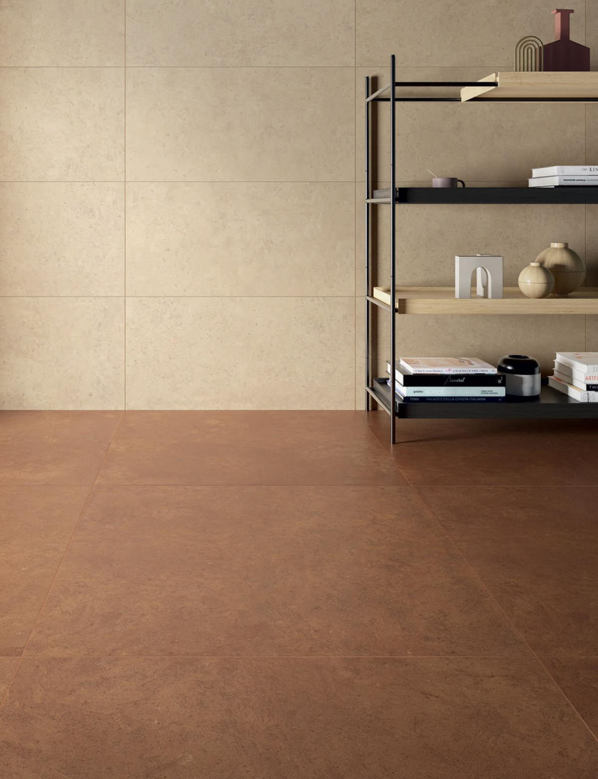 Aus der Wärme von Terrakotta, kombiniert mit den neutralen Farben von Beton, entsteht eine Feinsteinzeugkollektion mit einer doppelten Seele, die Stile und Kombinationen bietet, die es zu entdecken gilt.