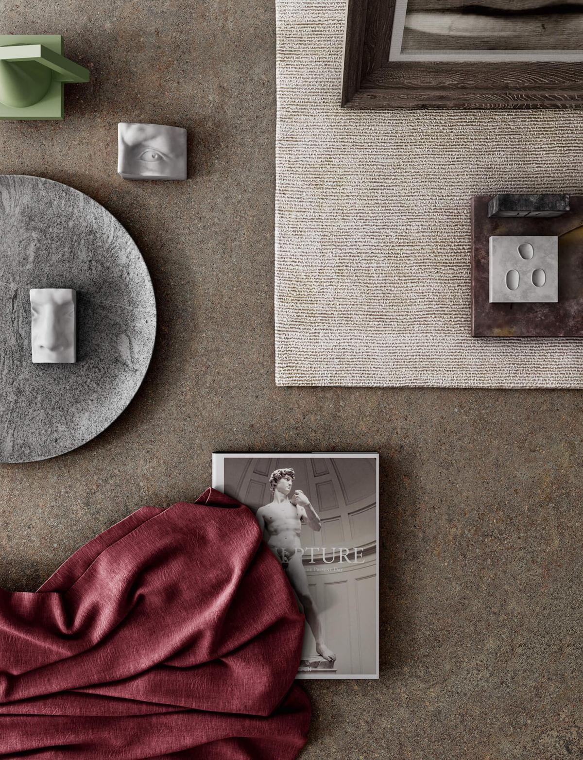„Shapes of Italy“ ist von sieben Natursteinen inspiriert, die die Geschichte der italienischen Kunst und Architektur geschrieben haben, und verleiht Wohnräumen dank des innovativen Designs seiner Keramikplatten eine zeitgemäße Eleganz