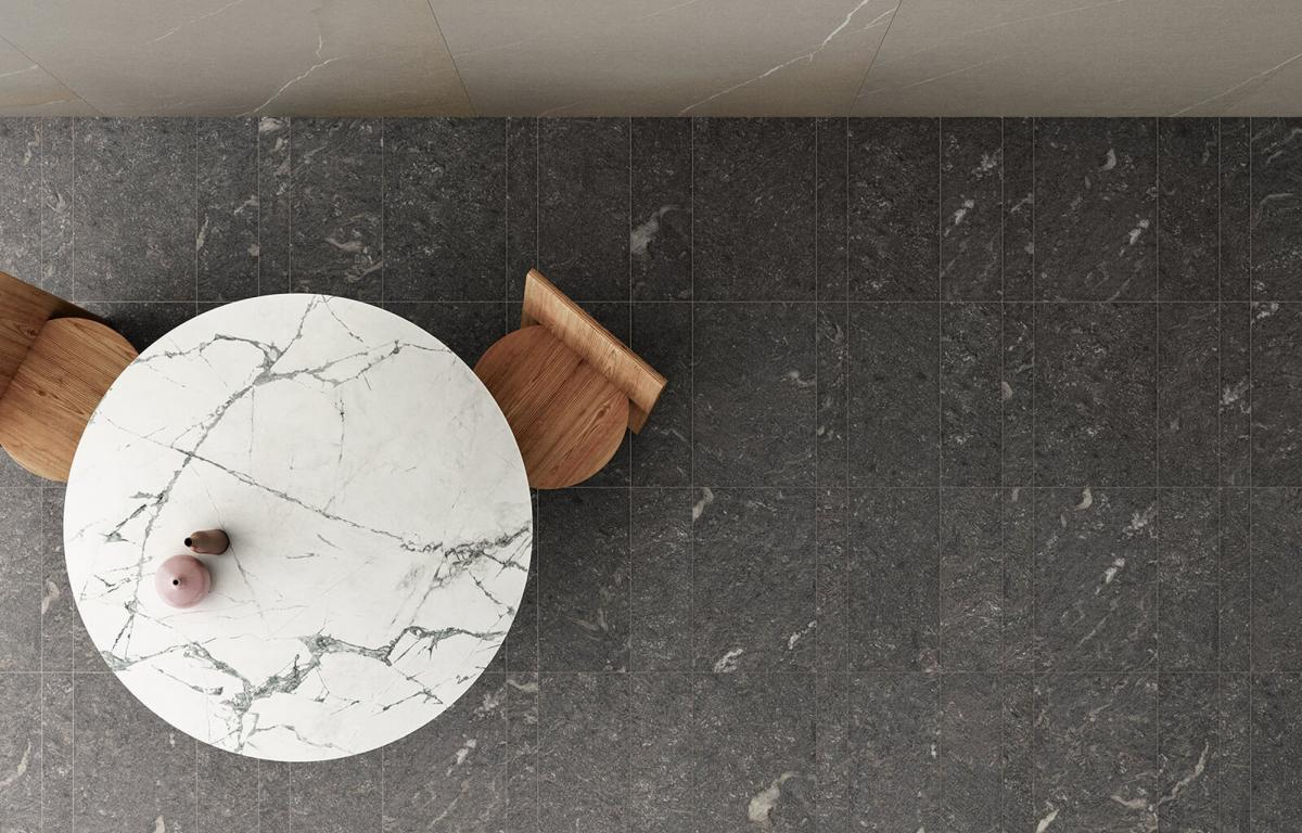 „Shapes of Italy“ ist von sieben Natursteinen inspiriert, die die Geschichte der italienischen Kunst und Architektur geschrieben haben, und verleiht Wohnräumen dank des innovativen Designs seiner Keramikplatten eine zeitgemäße Eleganz