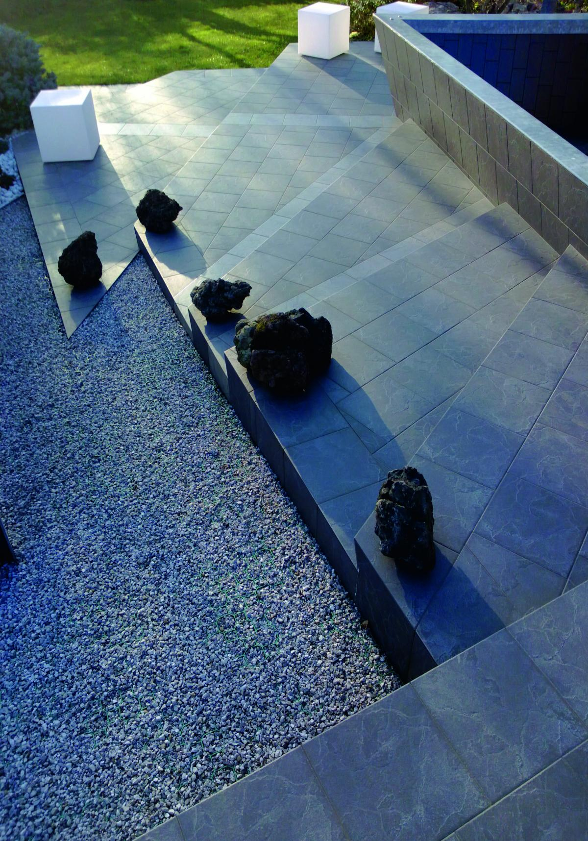 Die Ardesia-Serie von Casalgrande Padana, die aus der Kopie von Naturstein hergestellt wurde, wird in rutschfesten Oberflächen für Außenböden in sechs verschiedenen Farben in drei Größen (von 15x15 cm bis 15x30 cm bis zu 30x30 cm) verwendet und ist ideal für Außenböden von Innenhöfen, Veranden, Terrassen oder Terrassen.