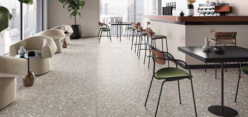 Den neuesten Designtrends folgend, greift Le Ville di Casalgrande Padana in einem zeitgenössischen Schlüssel die „venezianische Terrasse“ auf, einen Bodenbelag mit jahrzehntelangem Leben und einer der originellsten und berühmtesten Erfindungen in der italienischen Handwerksgeschichte. Flexibel und vielseitig, die neue Le Ville-Serie ist perfekt für alle Arten von Umgebungen, von Böden bis zu Wänden, von innen nach außen. Eine perfekte Serie, um große Flächen wie Hotelböden, Restaurants und jede Art von Geschäft zu bedecken, aber auch um jeden Raum des Hauses mit Klasse und Persönlichkeit zu verschönern. Quadratisch und rektifiziert, dank der perfekten Ebenheit und der Produktion im Großformat 120 x 120 cm, ermöglichen die Steinzeugplatten der neuen Serie mit Terrazzo-Effekt die Schaffung von durchgehenden Verlegeteppichen mit minimalen Fugen für die Gestaltung raffinierter und moderner Räume.