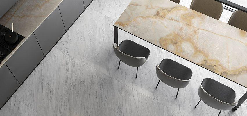 Die Marmoker-Serie greift die Adern, den Glanz und die kostbaren Farben auf, die in Extraktionsmurmeln üblich sind, wo jede Fliese buchstäblich einzigartig ist. Dank der hohen technischen Eigenschaften und der großen Auswahl an Farbtönen, Größen und Oberflächen ist die Marmoker-Serie von Casalgrande Padana ideal für die luxuriöse und elegante Einrichtung der Böden und Wände jeder Umgebung und in jeder Art von Design. Die breite Palette von Texturen, die in zehn verschiedene Größen und drei verschiedene Oberflächen unterteilt sind, greift die klassischen Farben des Marmors wieder auf und verwendet sie in einer modernen Tonart.