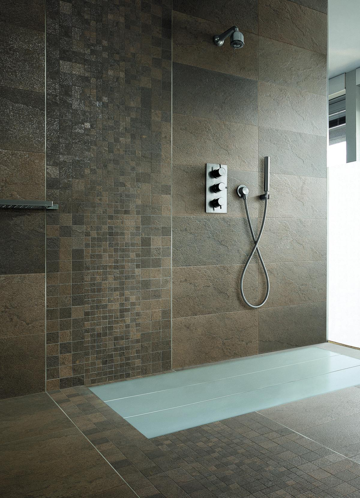 Feinsteinzeugfliesen, die sich durch verschiedene chromatische Farbtöne mit dreidimensional strukturierten Effekten auszeichnen.