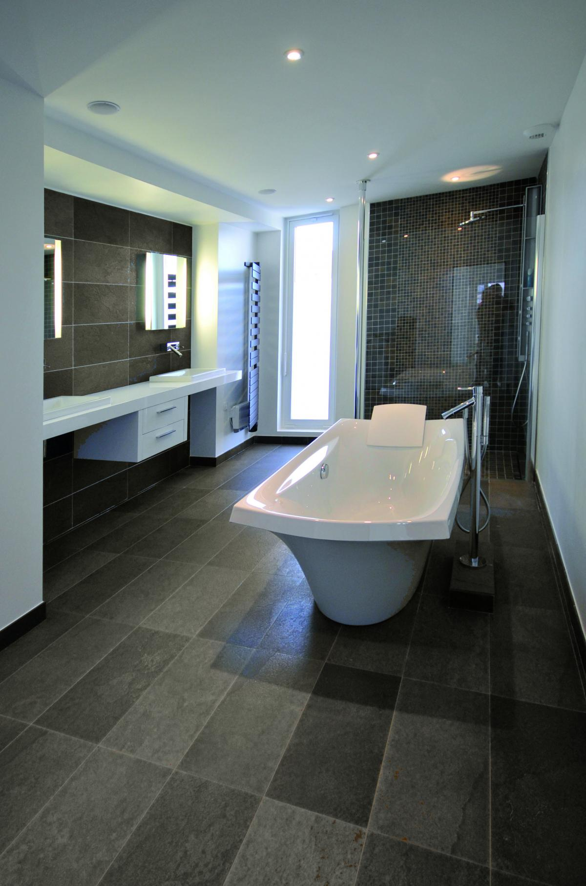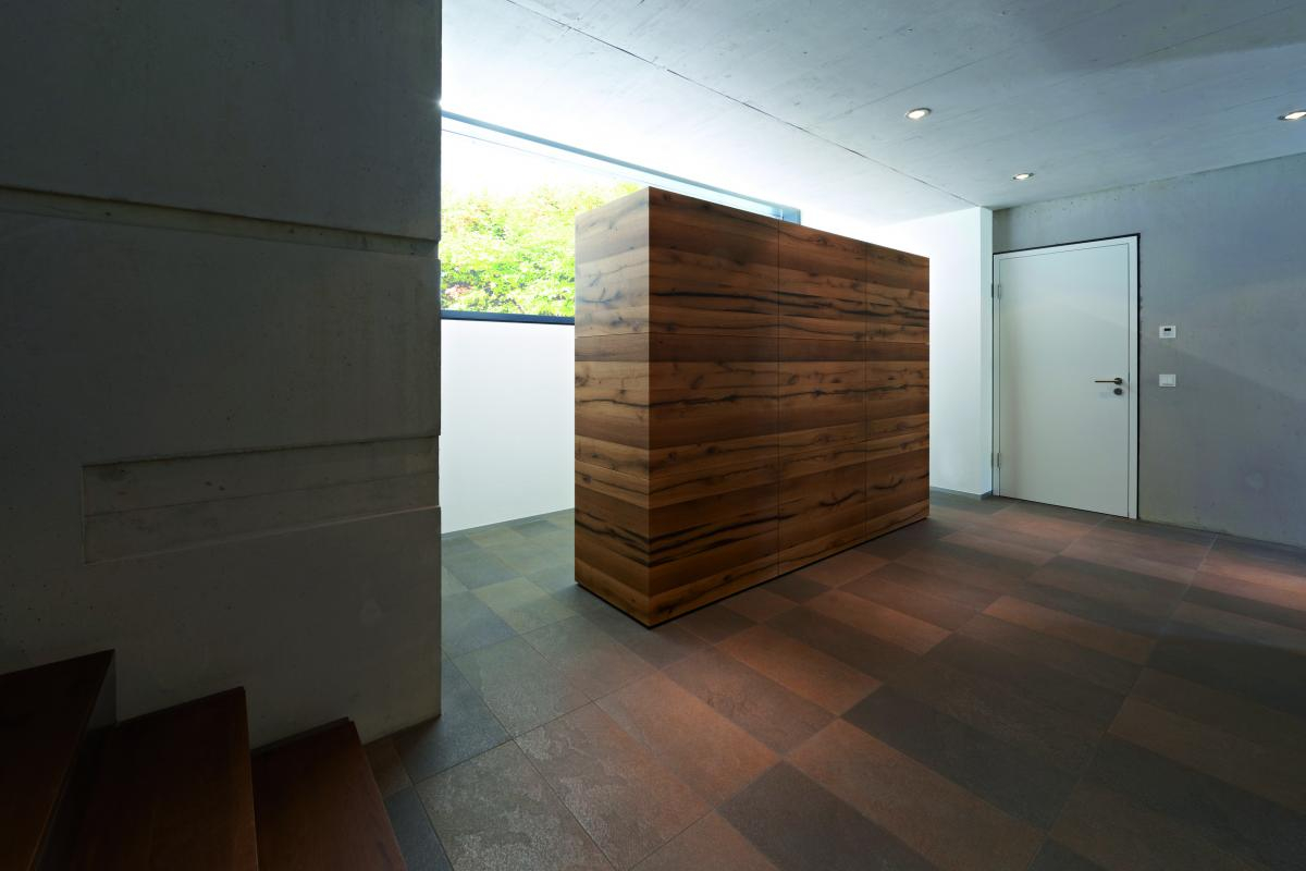 Feinsteinzeugfliesen, die sich durch verschiedene chromatische Farbtöne mit dreidimensional strukturierten Effekten auszeichnen.