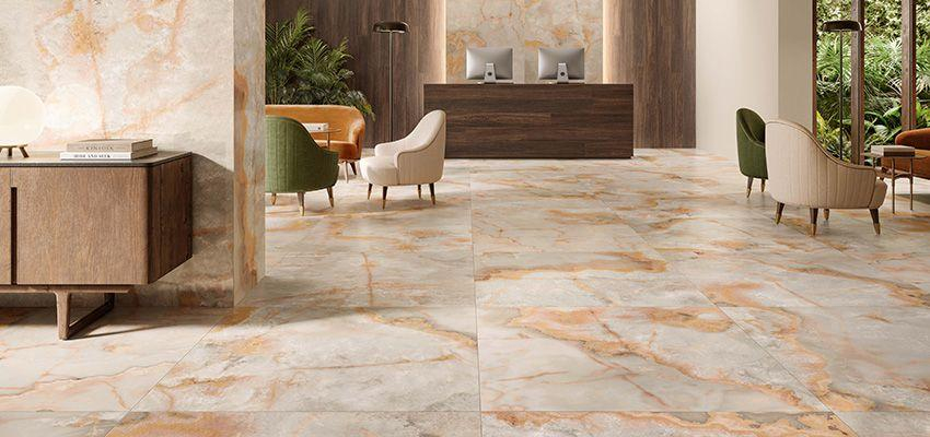 Die Feinsteinzeugserie Onici mit Marmoreffekt erinnert an die Pracht von Quarz, dem natürlichen Material, das Onyx erzeugt: eine Vielzahl von Farben, die die klassischen Farben des Marmors aufgreift und sie in Feinsteinzeug in einer modernen Tonart wieder aufgreift. Zwischen zarten Farbtönen und raffinierten Licht- und Schattenspielen wird Onici in sechs verschiedenen Texturen in einem natürlichen und glänzenden Finish hergestellt.Hergestellt aus Hochleistungs-Feinsteinzeug, besteht die Onici-Serie auch aus großen Platten, die ideal sind, um die für Naturstein typischen wechselnden Farben und Schattierungen hervorzuheben.Das glänzende Finish unterstreicht die Kostbarkeit der Oberfläche und verstärkt ihren Glanz und ihre zeitlose Raffinesse, während die sehr hohen Eigenschaften von Feinsteinzeug dieses Material vielseitig machen und sich in verschiedene Umgebungen und jeden Stil integrieren lassen, von modern bis klassisch, schick und raffiniert.