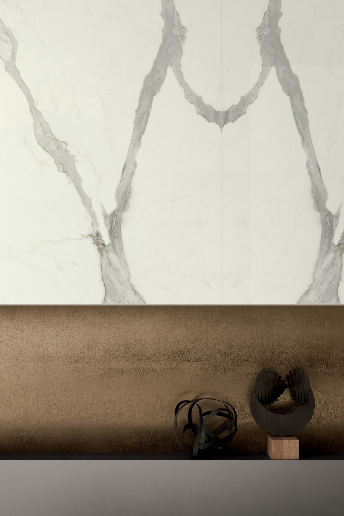 Kerlite Vanity ist eine Reihe von Platten, die die Ästhetik der raffiniertesten und minimalsten Murmeln hervorhebt. Feine Linien, weiche Adern und leichtes Hell-Dunkel bilden die Dekorationen dieser Serie, die den Stein im höchsten Sinne der klassischen Kultur aufgreift.Wie in einer Statue von Michelangelo schlug Cotto d'Este die natürlichsten Murmeln und Oberflächen vor und machte mit den Adern des Steins einen süßen Abschnitt der großen dünnen Platten. Vanity ist Teil der PROTECT-Serie®: antibakterielle Böden und Wände mit sehr hoher Leistung für eine gesunde, sichere und geschützte Umgebung.