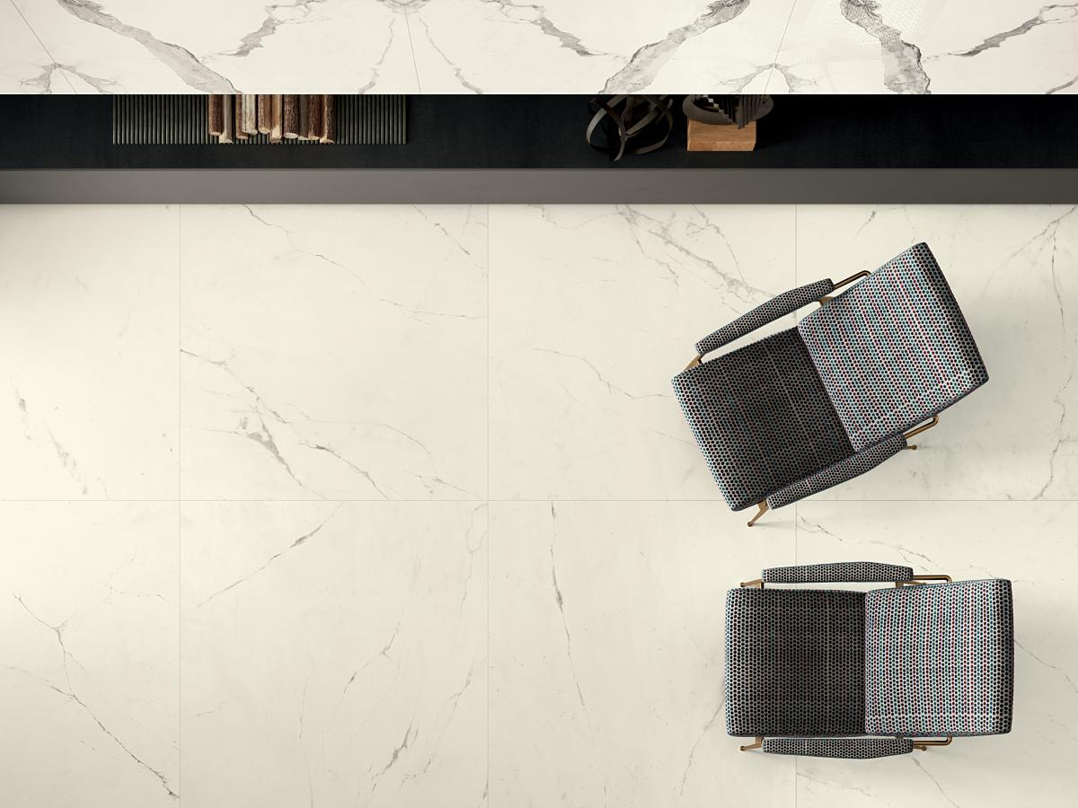 Kerlite Vanity ist eine Reihe von Platten, die die Ästhetik der raffiniertesten und minimalsten Murmeln hervorhebt. Feine Linien, weiche Adern und leichtes Hell-Dunkel bilden die Dekorationen dieser Serie, die den Stein im höchsten Sinne der klassischen Kultur aufgreift.Wie in einer Statue von Michelangelo schlug Cotto d'Este die natürlichsten Murmeln und Oberflächen vor und machte mit den Adern des Steins einen süßen Abschnitt der großen dünnen Platten. Vanity ist Teil der PROTECT-Serie®: antibakterielle Böden und Wände mit sehr hoher Leistung für eine gesunde, sichere und geschützte Umgebung.