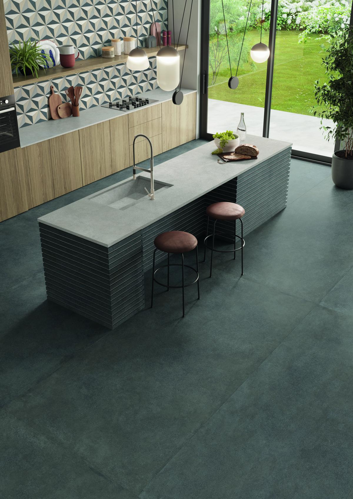 Be-Square von Emilceramica zelebriert den wesentlichsten und reinsten Aspekt von Beton. Die Kollektion wird durch dekorierte Zementfliesen in 4 trendigen Farben ergänzt, die sich ideal für die Verkleidung von städtischen Räumen und großstädtischen Lofts eignen