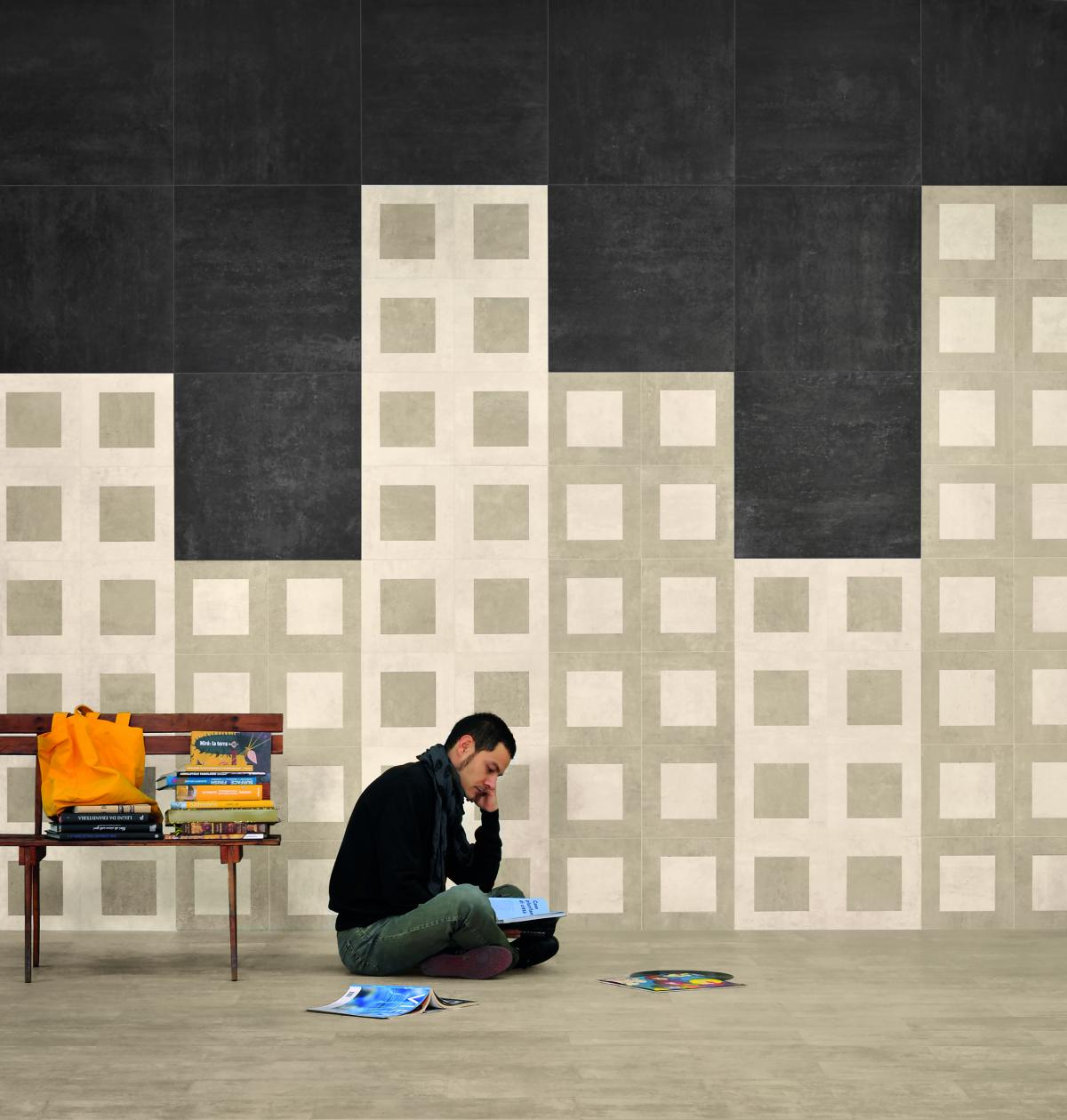 On Square ist die Keramikkollektion, die die Perfektion von Zement vermittelt, der zu Keramikmaterial wird, mit einer harmonischen Bewegung der Oberfläche mit einer Reihe von staubigen und natürlichen Farben mit zeitgemäßem Geschmack