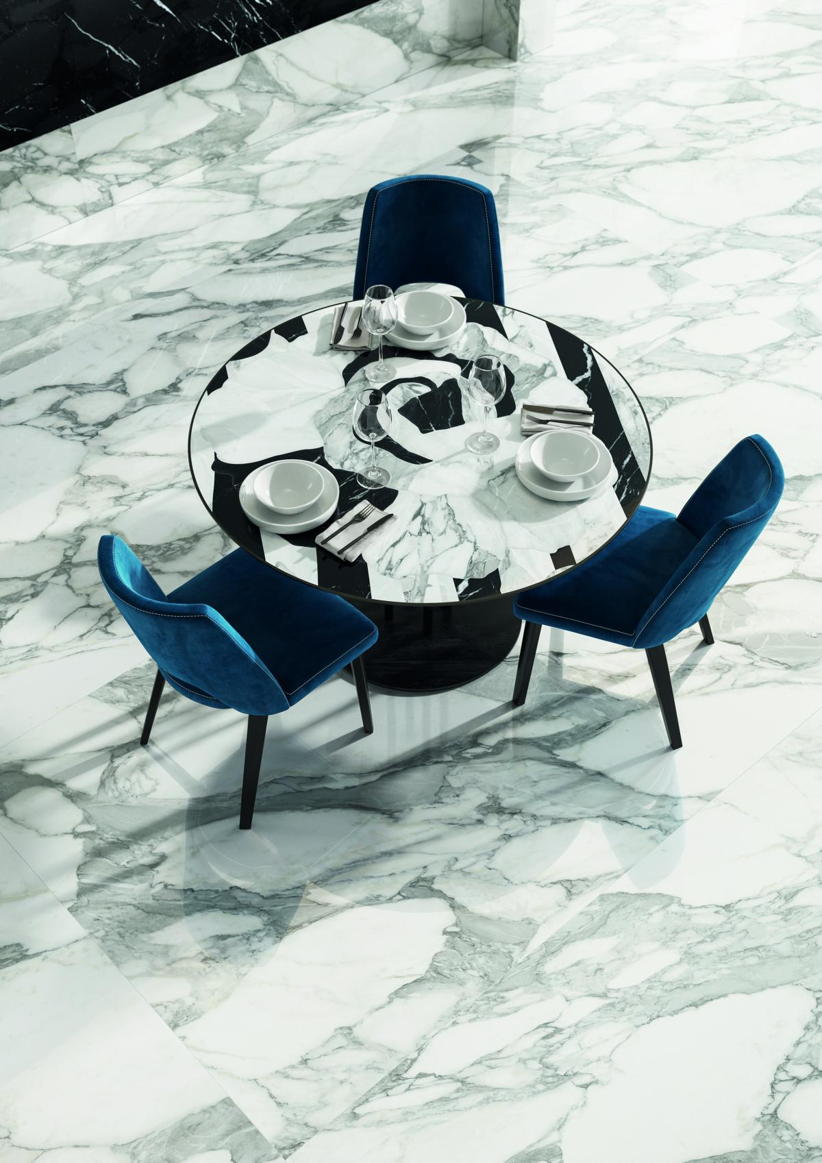 Tele di Marmo Selection ist eine mutige Kollektion, die sich in der Balance von Kontrasten ausdrückt, um Umgebungen zu schaffen, die so einzigartig wie ein Kunstwerk sind. Die Kollektion ist ausgehend von drei verschiedenen Murmeln entworfen, um mit klaren und wirkungsvollen Farbkombinationen zu spielen, eine neue und vielseitige Kollektion