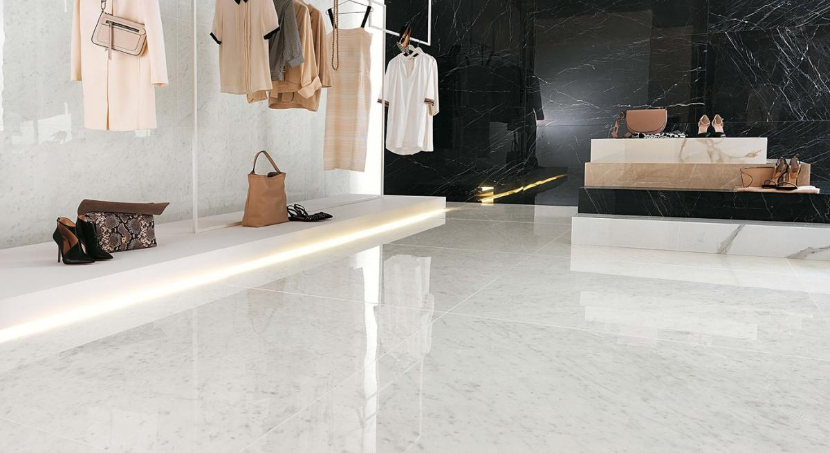 Roma Diamond ist die Serie von Feinsteinzeugfliesen und weißscherbigen Wandfliesen, die ganz dem zeitlosen Charme von poliertem Marmor gewidmet sind. Es stammt aus der Roma-Kollektion, die sich durch matte und satinierte Oberflächen auszeichnet, und bereichert sie mit einem Angebot an aktuellem und zeitgenössischem Keramikmarmor mit extrem glänzender Oberfläche