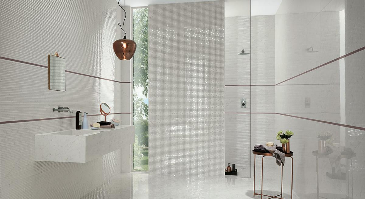 FAP Kollektion Roma diamond gres wal ltiles Größe 25X75 Farbe Carrara Fliesen Marmoroptik