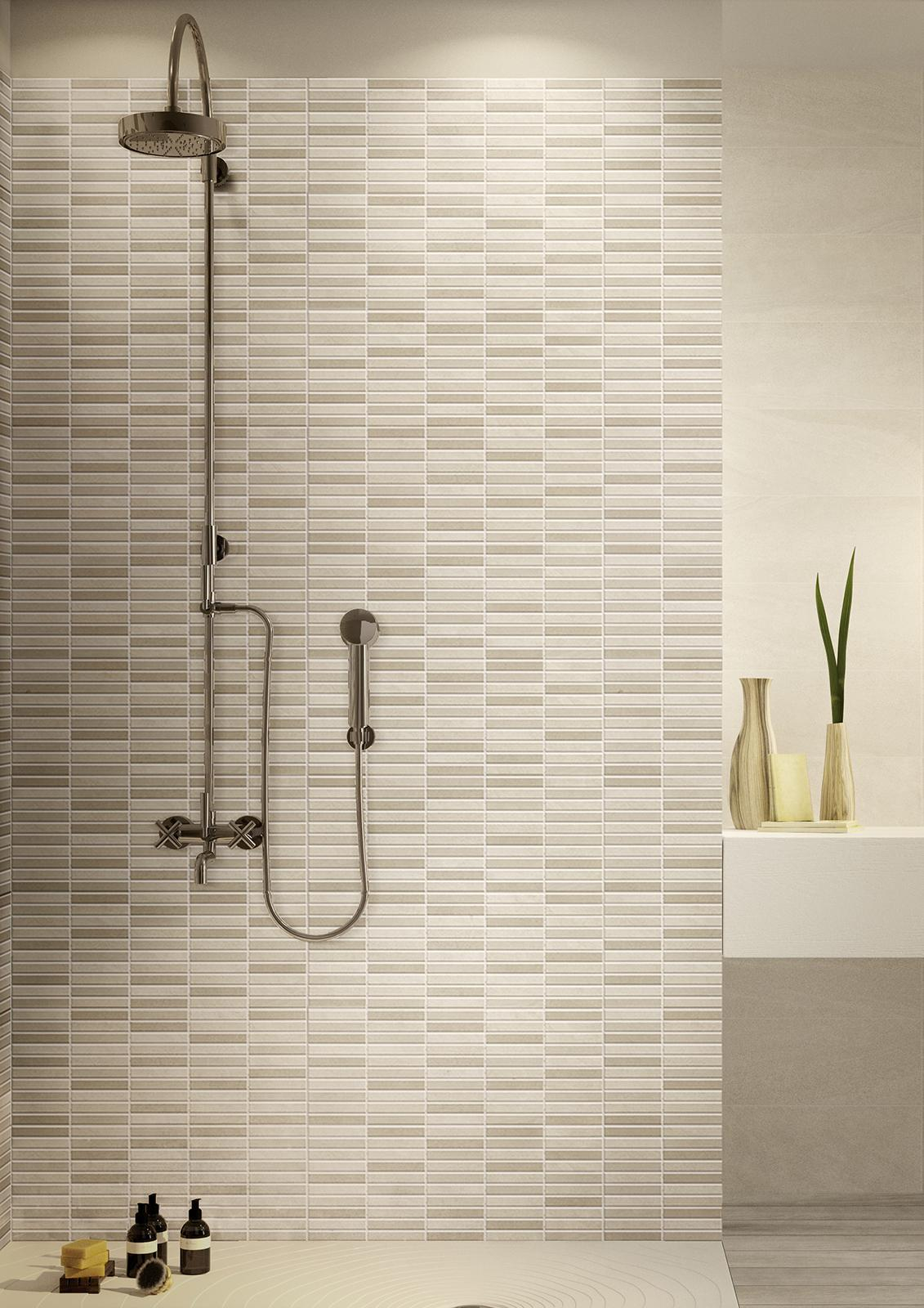 Weiche Oberflächen, Pastelltöne und raffinierte Dekorationen machen die Keramikfliesenkollektion von Interiors zu einer hervorragenden Lösung für die Verkleidung von Badezimmern und Küchen.