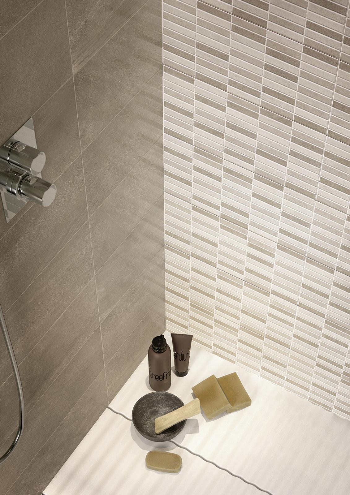 Weiche Oberflächen, Pastelltöne und raffinierte Dekorationen machen die Keramikfliesenkollektion von Interiors zu einer hervorragenden Lösung für die Verkleidung von Badezimmern und Küchen.