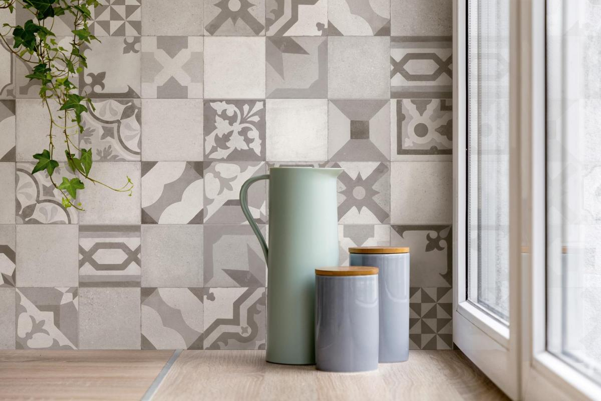 Work ist eine Kollektion für Fußböden und Wände, die von Industriezement inspiriert ist, eine Reihe von Dekorationen, die von traditionellen Zementfliesen inspiriert sind, für Wände mit einem modernen und raffinierten Geschmack.