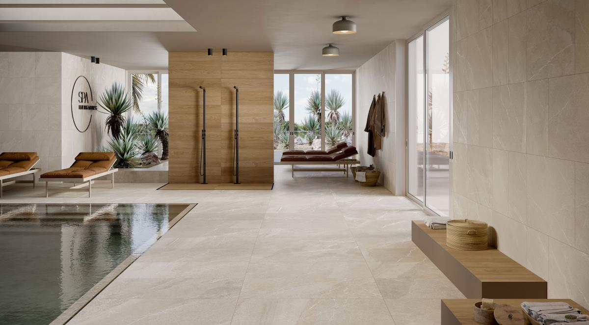 Die ganze materielle Stärke des Steins lebt in dieser neuen Feinsteinzeugserie wieder auf, die von Naturschiefer inspiriert ist und dadurch noch prestigeträchtiger und einladender wirkt