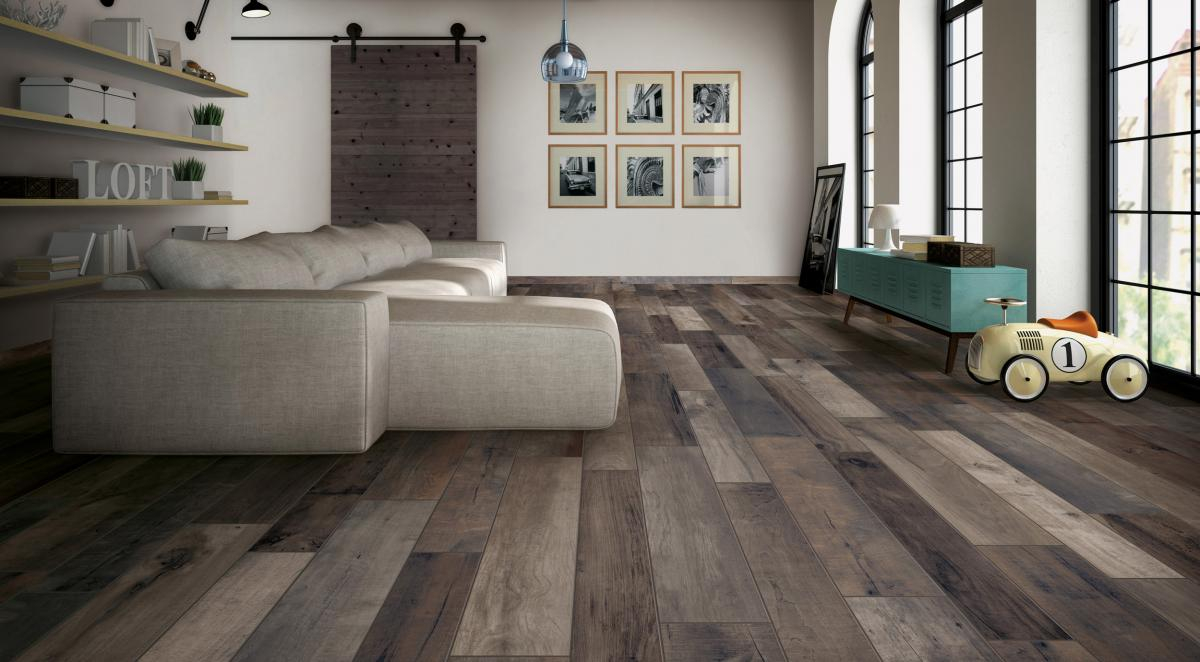 Die neue Holzoptik-Kollektion Aspen ist von Erlenholz inspiriert, einem sehr widerstandsfähigen Holz. Die erhaltenen Äxte sind nicht besonders knorrig und weisen stark schattierte Farben auf, die Ceramica Rondine in Feinsteinzeug nachbilden wollte, um ein Produkt zu erhalten, das für den Bodenbelag und die Verkleidung einer Berghütte verwendet werden kann