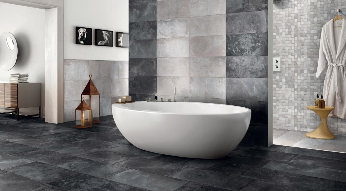 Rondine Kollektion London Größe 30,5x60,5 Farbe Charcoal Fliesen Steinoptik