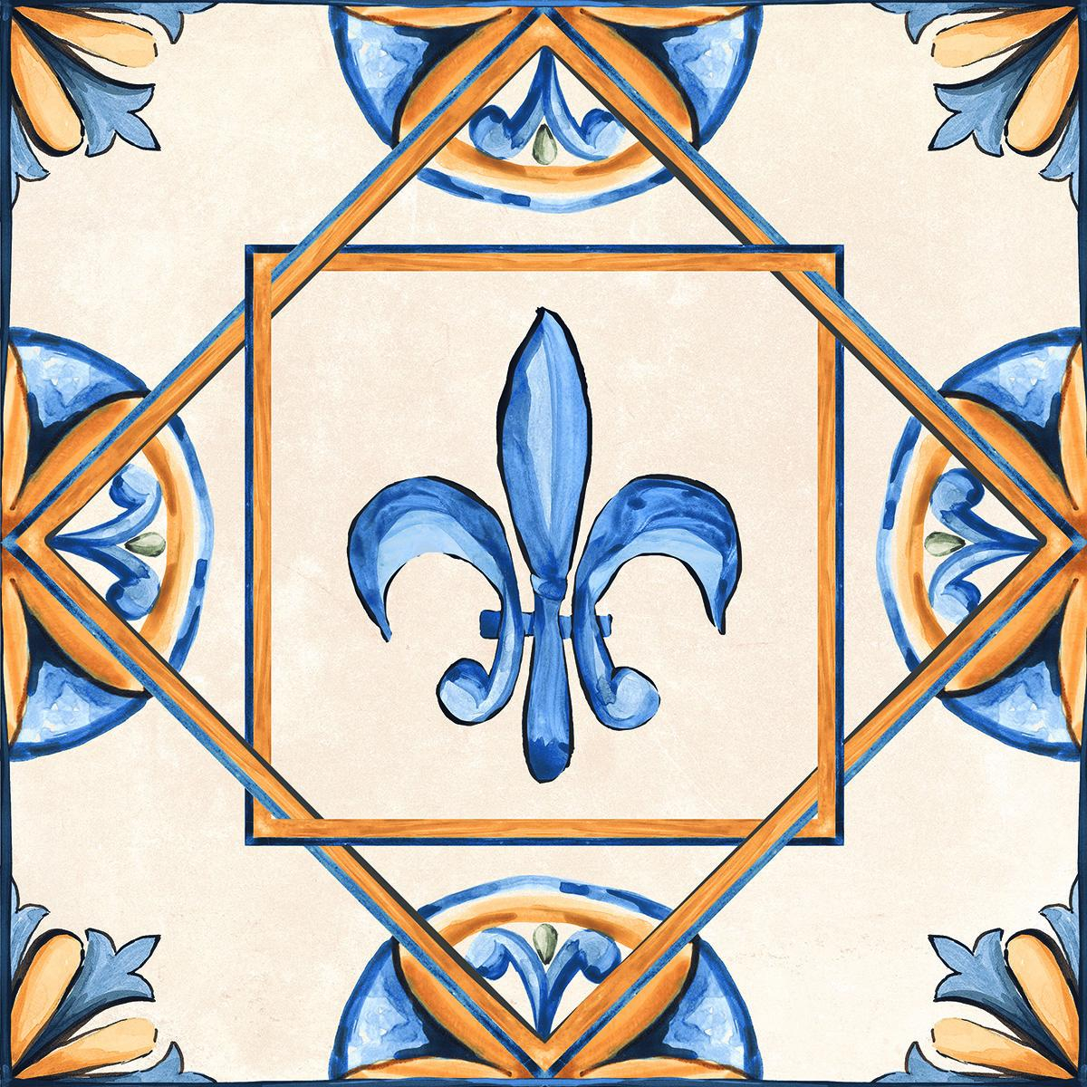 Rondine Kollektion Tuscany Größe 20,3x20,3 Farbe Giotto dec 2 Terracotta Fliesen