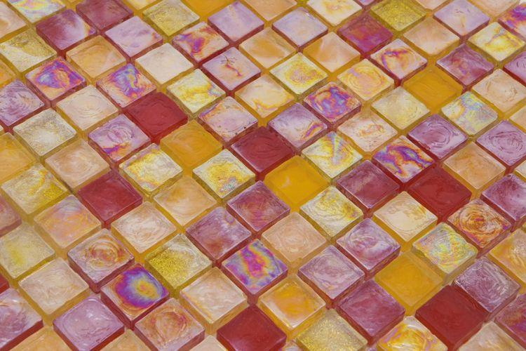 Es wird durch Schmelzen und Gießen von Siliciumdioxidpulvern, Flussmitteln und Farbstoffen hergestellt. Das Ergebnis sind farbige Glasfliesen in normaler Größe. Schwimmbäder, Fassaden, Badezimmer, Küchen und Innenarchitektur machen Glasmosaik zu einem der Materialien mit den vielfältigsten Einsatzmöglichkeiten