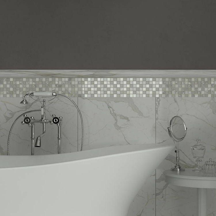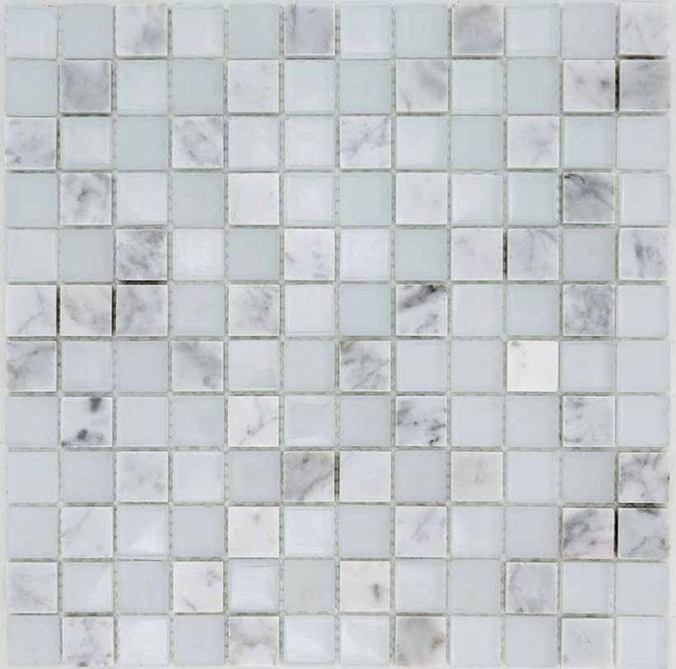 Ston Kollektion Lacca Größe 2,3x2,3 Farbe Marmobianco+crystal Mosaik Wandfliesen
