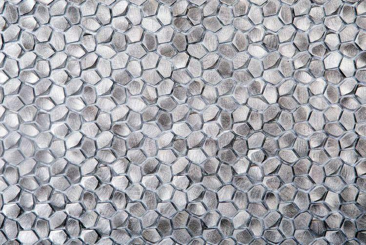 Mosaike aus Metallblechen, die Fliesen unterschiedlicher Dicke bedecken.