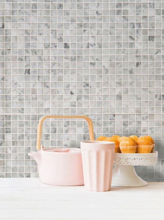 Ston Kollektion Pietrarreda Größe 1,5x1,5 Farbe Marmobianco lucido Mosaik Wandfliesen