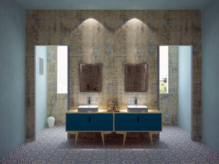 Von Hand dekorierte dünne Feinsteinzeugplatten (Die Platten können digital kalt bedruckt werden, eine Technik, die für Wandverkleidungen geeignet ist