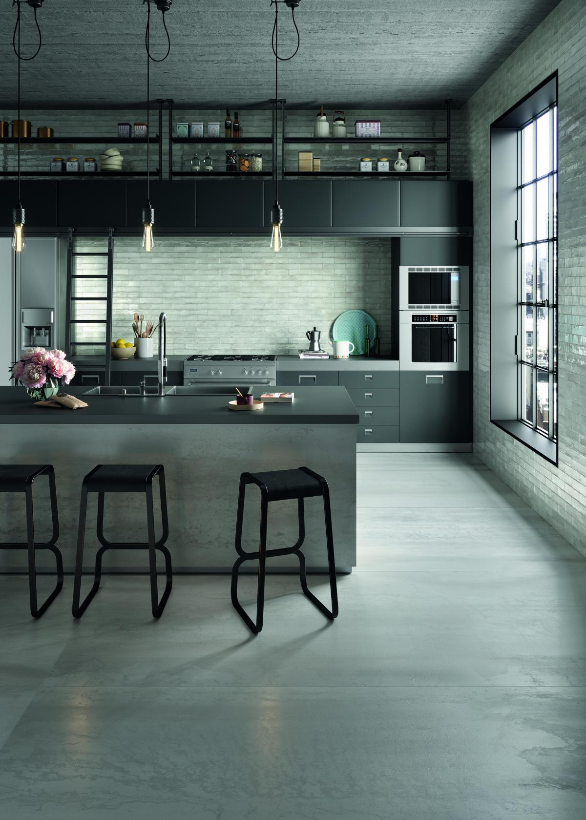 Die Eigenschaften von Galmei verleihen der Oberfläche Materialität, modifizieren das Licht und interpretieren es in den wechselnden Farben der Platte neu. Der Metallic-Effekt in vier Farben wird in raffinierte Lichteffekte und Reflexionen dekodiert, die sich gut zur Definition moderner Räume und avantgardistischer Gebäude eignen. Das Metall wirft die Kälte ab, die es zu einem industriellen Element degradiert, um ein im Alltag erfahrbares Element zu werden. Es interpretiert schillernde Halos, Reflexionen und raffinierte Farben, von Schwarz über Schiefer bis hin zu Stahl und Weiß. Der Eklektizismus der Kollektion kommt mit MetalBrick, dem von Raku-Techniken inspirierten Format 6x24 in einer Palette mit den Nuancen der großen Metallica-Platten, maximal zum Ausdruck