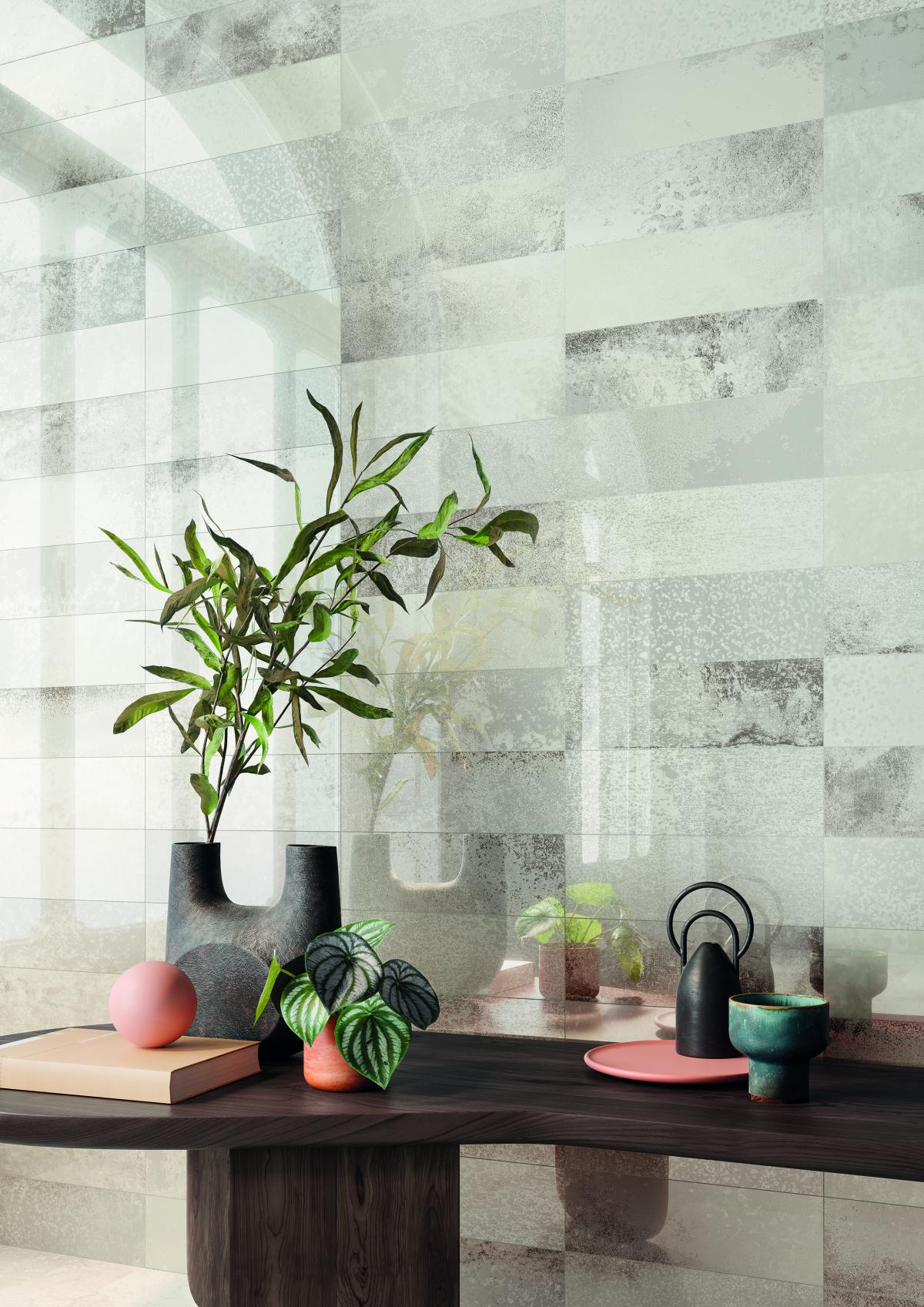Neue Kollektion, inspiriert von den Oberflächen antiker Spiegel, die durch atmosphärische Einflüsse oxidiert und im Laufe der Zeit getrübt wurden. Bei Narciso sticht jedes Detail dank der glänzend geläppten und matt geläppten Oberflächen hervor, die die ursprünglichen ästhetischen und materiellen Effekte wiederherstellen. Mit vier Farben erhältlich: Perle, Silber, Topas und Saphir. Diese Kollektion schafft einen idealen Effekt für öffentliche und private Umgebungen mit großer visueller Wirkung. Die Effekte, die durch das Spiel des Lichts mit den Oberflächen entstehen und durch die Reflexionen verstärkt werden, die die Kollektion hervorruft. Fragmente-Dekore aus Spiegelsplittern, die harmonisch auf der Oberfläche angeordnet sind, und das Gemma-Dekor mit antiken Effekten und stilisierten Dekorationen fügen der Kollektion weitere Stilreflexe hinzu.