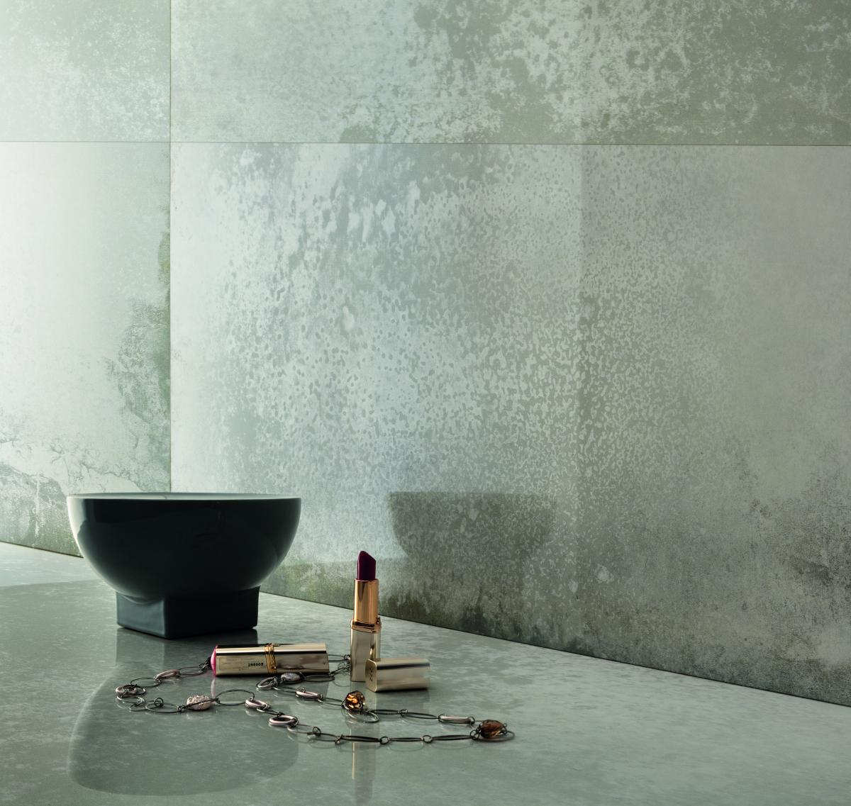 Neue Kollektion, inspiriert von den Oberflächen antiker Spiegel, die durch atmosphärische Einflüsse oxidiert und im Laufe der Zeit getrübt wurden. Bei Narciso sticht jedes Detail dank der glänzend geläppten und matt geläppten Oberflächen hervor, die die ursprünglichen ästhetischen und materiellen Effekte wiederherstellen. Mit vier Farben erhältlich: Perle, Silber, Topas und Saphir. Diese Kollektion schafft einen idealen Effekt für öffentliche und private Umgebungen mit großer visueller Wirkung. Die Effekte, die durch das Spiel des Lichts mit den Oberflächen entstehen und durch die Reflexionen verstärkt werden, die die Kollektion hervorruft. Fragmente-Dekore aus Spiegelsplittern, die harmonisch auf der Oberfläche angeordnet sind, und das Gemma-Dekor mit antiken Effekten und stilisierten Dekorationen fügen der Kollektion weitere Stilreflexe hinzu.