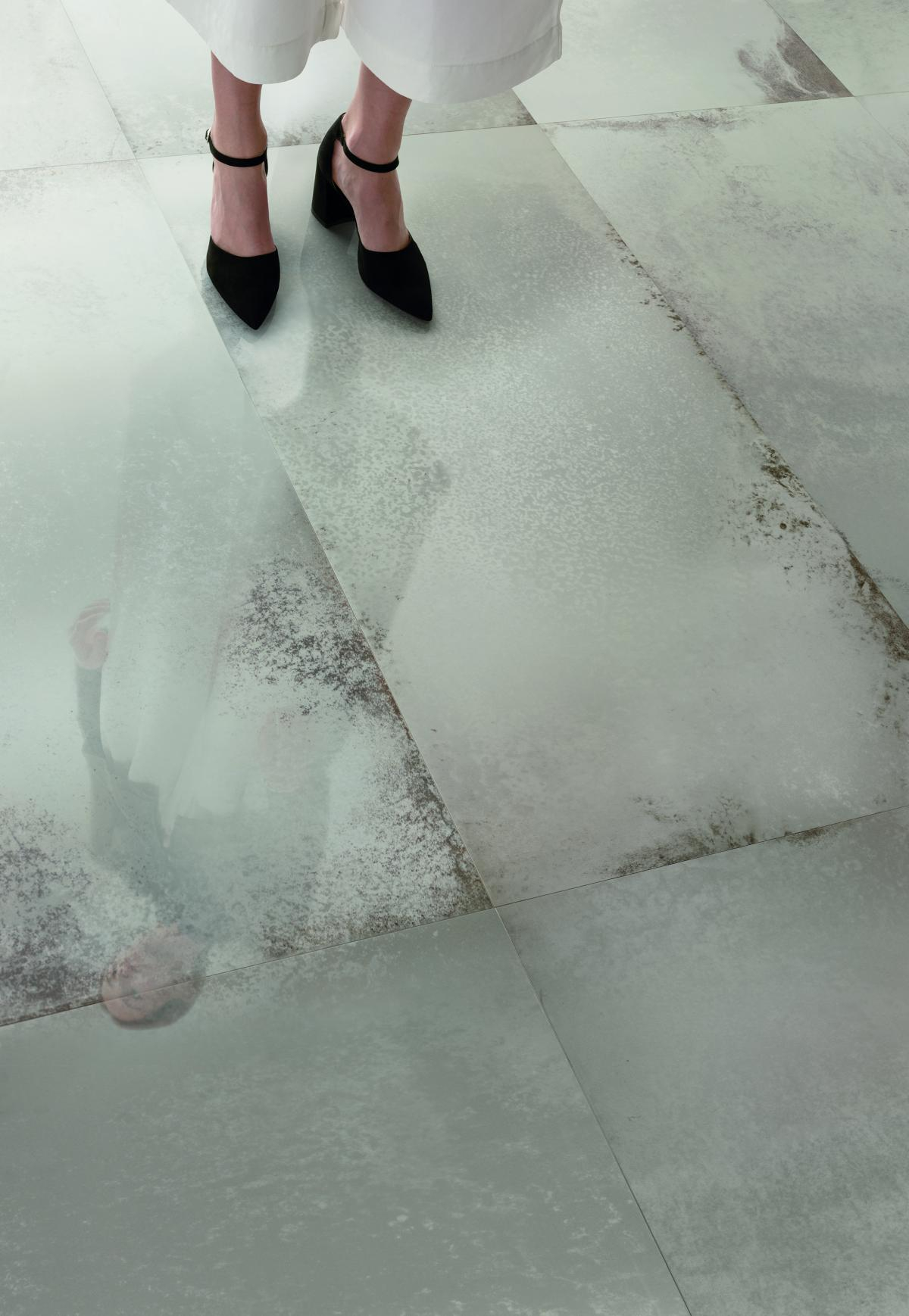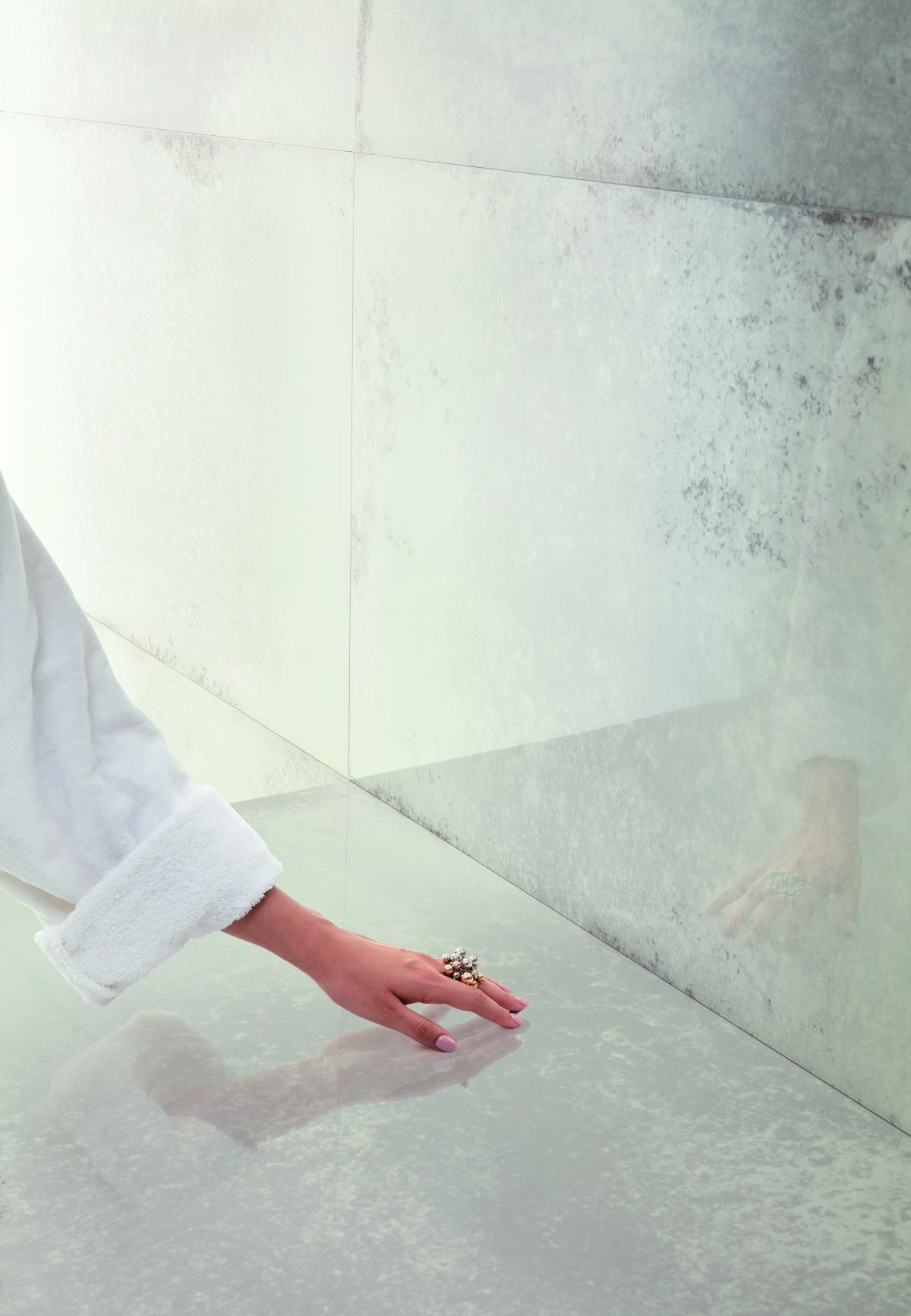 Neue Kollektion, inspiriert von den Oberflächen antiker Spiegel, die durch atmosphärische Einflüsse oxidiert und im Laufe der Zeit getrübt wurden. Bei Narciso sticht jedes Detail dank der glänzend geläppten und matt geläppten Oberflächen hervor, die die ursprünglichen ästhetischen und materiellen Effekte wiederherstellen. Mit vier Farben erhältlich: Perle, Silber, Topas und Saphir. Diese Kollektion schafft einen idealen Effekt für öffentliche und private Umgebungen mit großer visueller Wirkung. Die Effekte, die durch das Spiel des Lichts mit den Oberflächen entstehen und durch die Reflexionen verstärkt werden, die die Kollektion hervorruft. Fragmente-Dekore aus Spiegelsplittern, die harmonisch auf der Oberfläche angeordnet sind, und das Gemma-Dekor mit antiken Effekten und stilisierten Dekorationen fügen der Kollektion weitere Stilreflexe hinzu.